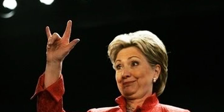 Hillary Clinton doing the El Diablo sign. This Illuminati hand sign is also known as The Devil’s Horn.